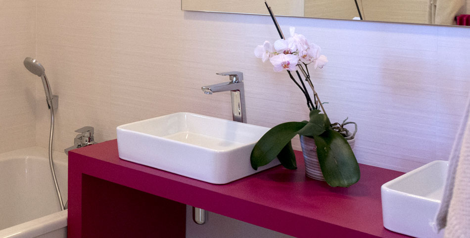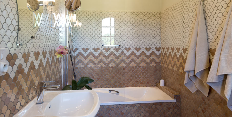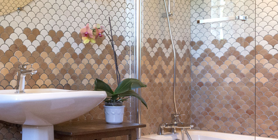 L’autre est proche de la cuisine et de la chambre de Yasmine . Elle a été totalement rénovée avec une douche à l’italienne, une baignoire et 2 vasques. A proximité de ses deux salles de bain se trouvent des toilettes séparées.